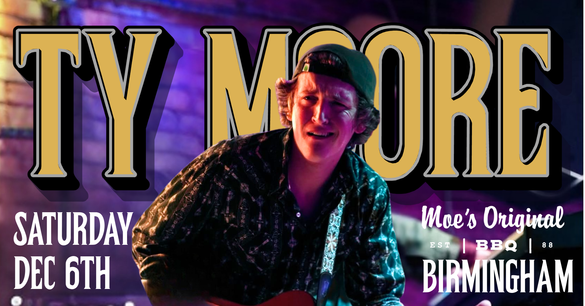 Ty Moore and his band are heading to Birmingham! Catch them live on Saturday, December 6th at 9 PM at Moe’s Original BBQ in Lakeview. Expect a high-energy show packed with soulful vocals, tight musicianship, and the kind of feel-good vibe that keeps the crowd moving. Great music, great food, great night out—don’t miss it!